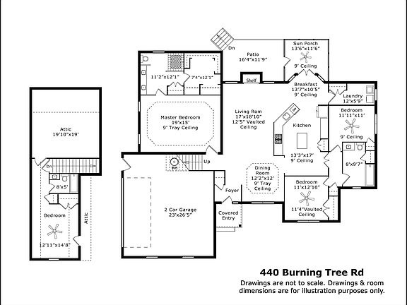 • Washer/Dryer Connect, Smoke Alarm, Ceiling Fans, Attic Storage, Split Bedroom Plan