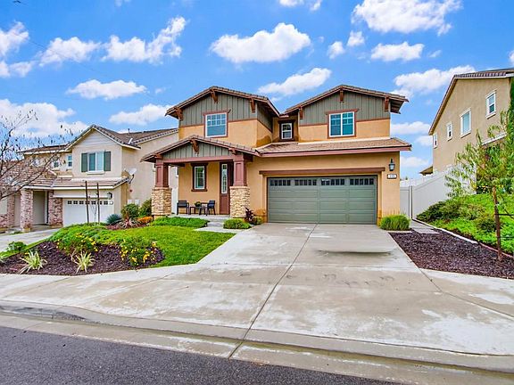 Take in the gorgeous views of Fallbrook in this stunning 3 bed, 3 bath luxury home within the friendly confines of the Westbury Neighborhood of Horse Creek Ridge. Past the lovely curb appeal and covered front patio awaits your new home with a bright white kitchen with stainless steel appliances and fixtures. Pendant lights illuminate the 4-seat bar connecting diners with the family chef. Ample pantry helps keep large unwanted items off the countertops. Subway tile backsplash adds character to the aesthetic. The ground floor primary suite ensures you will enjoy the space without needing to walk the stairs. Primary includes a large soaking tub, spacious step-in shower, massive walk-in closet with organizer, and a new barn door to separate the bath. There is also a first-floor secondary bedroom with access to a full 3-piece bath. Upstairs you will find the third bedroom, spacious loft (potential 4th bedroom), and full bathroom. The backyard welcomes beautiful westerly views of area hills to be enjoyed while cooking a steak or just enjoying a glass of wine under the amazing sunset. Home also includes high-end luxury vinyl plank flooring, plantation shutters, tankless water heater, epoxy coated garage floor. Horse Creek Ridge includes amenities such as pools, hot tubs, barbecues, Harvest House community center, sports fields, playgrounds, and access to an incredible network of Monserate Mountain hiking trails. The commuter-friendly location provides quick access to both the 15 and 76. Some of the photos were digitally modified.