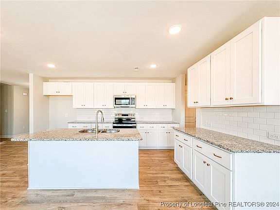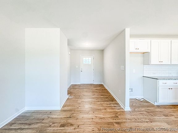 The Ridgeland floor plan by Furr Construction features 3 bedrooms and 2 full bathrooms. A lovely foyer welcomes you into the open living room, perfect for entertaining. The kitchen offers ample cabinet and countertop space, along with a walk-in pantry. The adjacent breakfast nook maximizes the space. The mudroom and laundry room, located next to the kitchen, provide convenient access to the garage. The spacious Owner's Suite includes a walk-in closet, dual vanities, a large shower, and a linen closet. Two additional bedrooms share a full bathroom. This home sits on just under half an acre. Preferred lender: Alpha Mortgage. Currently under construction with an expected completion date in mid-August 2024. Photos are for illustrative purposes only.