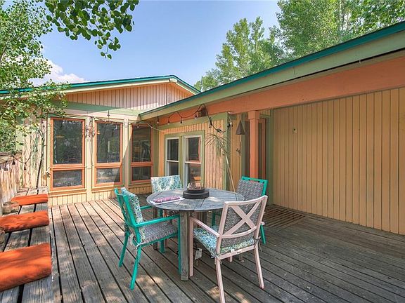 A home to make your own! Enjoy a quiet location just 2 blocks from the Silverthorne Rec Center & Rainbow Park. A peaceful side garden with full grown aspen trees leads to open space adjacent to the backyard. The sunny front deck offers more outdoor space to entertain friends & family. Enjoy main level living with a family room, dining room & kitchen, plus a unique sunroom. Lower level utility/laundry + second living space and a large flex/bonus space. 2-car garage. Tons of potential, sold as-is.