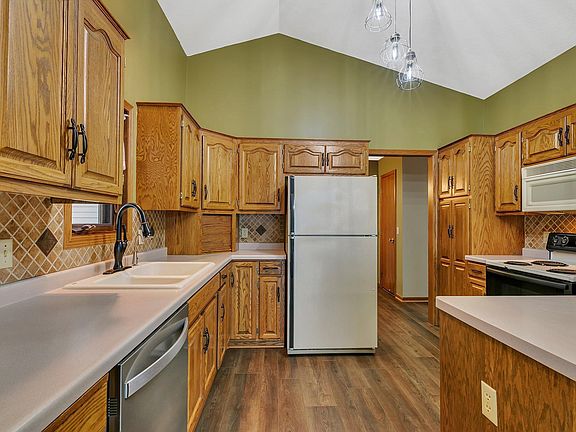 One Level Living. Beautifully maintained, one owner home in Annandale. This 2 bedroom, 2 bath home is located on a quiet, dead end street. Short walking distance to grocery store, churches, downtown & city parks. Home features oak cabinets in kitchen, vaulted ceilings, covered front porch, deck, large 2 car garage, central air conditioning & steel siding. Master bedroom has it's own private bathroom & walk-in closet. Recent updates include laminate flooring in living room, kitchen & laundry room and fresh paint in both bedrooms and main bathroom. Perfect retirement home.