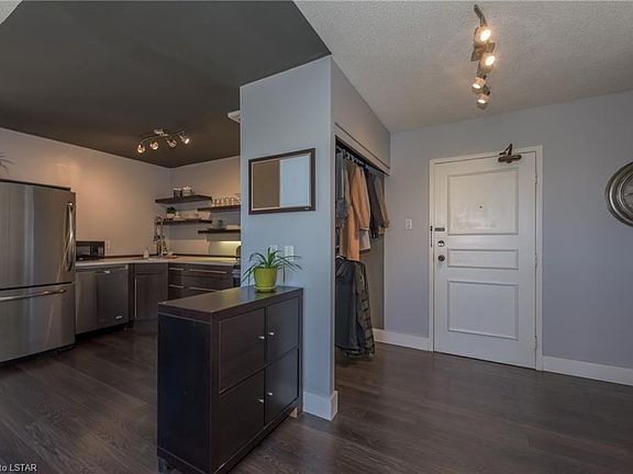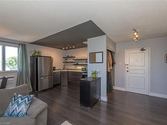 You'll love living in London's downtown historic Woodfield district where you can walk to shops, restaurants, tennis courts, and public transit, or just wander around the quiet back streets to admire the beautiful neighbourhood around you! Enjoy living in a bright and light filled corner unit with a large open concept living space. Monthly condo fees include ALL of your utilities! 1 spacious bedroom can also accommodate a work from home space, plus clever added storage in the bedroom and foyer closet will keep you organized. Exclusive use of a storage locker for your extra or seasonal items. The kitchen was thoughtfully renovated to reflect an urban vibe with open floating shelving, but still providing ample storage space. Living space is large enough for your comfy couch or sectional where you can unwind at the end of day and relax. Updated laminate floors throughout and neutral modern colour choices - you will love living here!