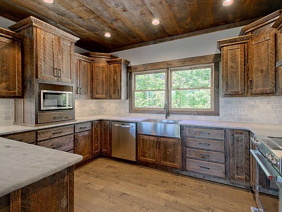 Check out this Show Stopper! NEWLY FINISHED 4 Bedroom 3 1/2 Bath with ATTACHED DOUBLE CAR GARAGE. This Cabin has an OPEN FLOOR PLAN with the living and dining area overlooking the LONG RANGE LAYERED MOUNTAIN VIEWS. Beautiful Mixture of Rustic Woods and Drywall. MASTER BEDROOM AND LAUDRY LOCATED ON MAIN FLOOR. CUSTOM CABINETRY Throughout the House. Finished Terrance Level complete with 4th Bedroom, Living Area, FULL KITCHENETTE and GAME AREA ROOM. Want to be in the Mountains but Close To Town? This is it, under 5 miles to DOWNTOWN BLUE RIDGE, LAKE BLUE RIDGE, TOCCOA RIVER, HIKING TRAILS, ETC...THIS WOULD MAKE A WONDERFUL RENTAL CABIN.