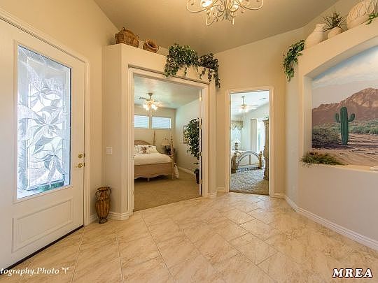 This is a fantastic 1,824 sq ft 2 bedrooms, den with 2.5 baths single story home in a 55 plus gated community. As a special bonus this has awesome mountain views. The spacious kitchen has tons of cabinets, a built in computer area and in kitchen dining. Sit and enjoy the beautiful South facing mountain views from your 2 covered patios. This home has 8 foot interior doors, with a beautiful cut glass entry door, central vacuum, pull down attic access ladder, newer AC system, water softener and water filtration system at sink. This is a must see to appreciate all it has to offer.