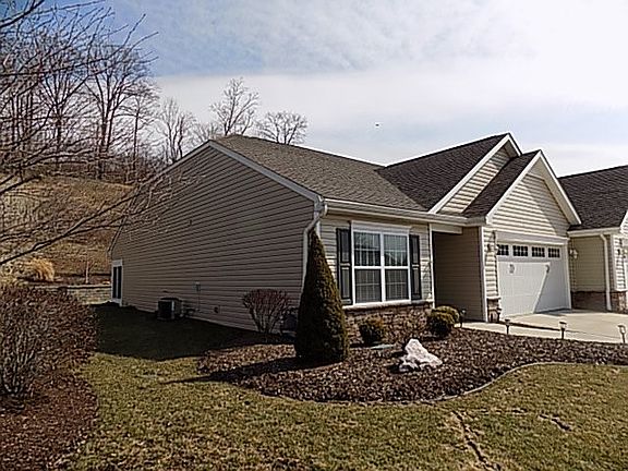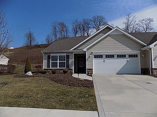 Move right into this 2017 beautiful patio home in Allegheny Woodlands built by Award Winning Suncrest Homes! This home is located in a sidewalk community with street lights. One floor living, vaulted ceilings, open floor plan, all-season sitting room, nicely landscaped, lovely retaining wall in rear. Beautiful fully-equipped kitchen has quartz countertops and stainless appliances. Seller had irrigation system installed for beautiful, plush green grass! Monthly maintenance fee includes grass cutting, shrub trimming, mulching, snow removal, as well as access to the heated pool, clubhouse and tot play ground.