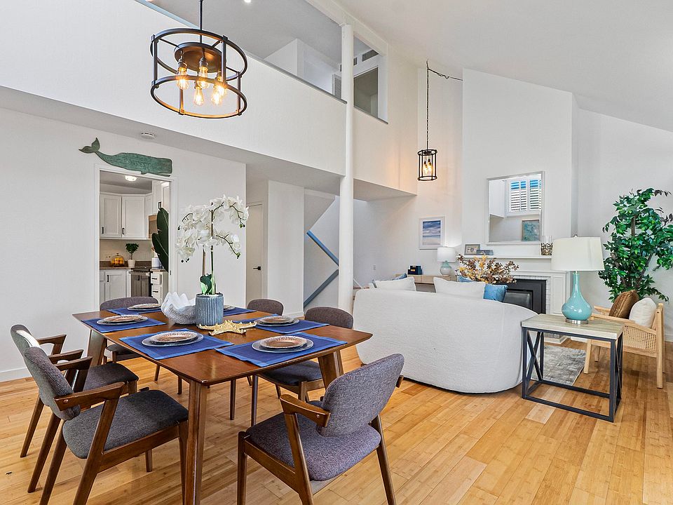 Discover bayside tranquility in this award-winning Fisher-Friedman designed condo (Sunset 1972). This striking 2-bedroom, 2.5-bath corner residence offers a bright, spacious tri-level layout with an additional loft space that can serve as a 3rd bedroom with a closet. Enjoy abundant natural light throughout, complemented by bamboo and oak flooring, and a thoughtful separation of spaces. The first level features a living room with soaring ceilings and a gas fireplace, adjoining a dining area and a kitchen equipped with a new stove oven. On the lower level, you'll find two bedrooms that open to a private yard, a laundry room, and a storage under stairs. Community amenities include secure garage parking with two spaces, a heated SALT water swimming pool, and serene grounds. There's also a Tesla charger available in the gated parking garage you have the opportunity to apply your own and you can also request for install solar panels!!! Just steps away, you'll be greeted by stunning views of the Marina and the San Francisco Bay... 3D tour click here: https://www.homes.com/property/440-cola-ballena-alameda-ca-unit-f/qz6gy5g9b7n6r/?dk=7jlxtfvwgl4cp&tab=1