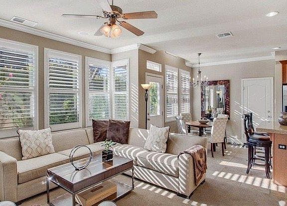 Single Family Home conveniently located near business parks, shopping, restaurants, entertainment and freeways. This home in the Lauderhill community is waiting for you. It features 3 bedrooms (all upstairs), 2.5 baths with upgraded Kohler fixtures, 1735 sq. ft,, & 2 car attached garage. Living room and breakfast area open onto lovely landscaped private patio (note there is no backyard--just the patio). The kitchen has cherry wood cabinets with pull outs and self closing drawers, granite tile countertops, stainless steel appliances including side by side refrigerator, 5 burner gas cooktop and self cleaning oven, microwave, dishwasher, and a large walk in pantry for plenty of storage. The living room includes a beautiful built-in cherry wood entertainment center with surround sound speakers and self closing drawers, crown moulding and a ceiling fan along with a gas log see-through fireplace with an electronic starter. No "spare the air" restrictions for this home. There is also a sitting room/library and a half bath to complete the downstairs portion of the home. Upstairs you will find a Master bedroom suite with ceiling fan & includes a dual sink vanity, large shower and Roman soaking tub, plus a huge walk-in closet with custom organizers. The second floor has a laundry room complete with electric washer and dryer & two other bedrooms, one with a walk-in closet. Full hall/guest bath with dual sinks and tub/shower combo. This home has Hunter Douglas Plantation shutters throughout, designer carpeting and beautiful tile in addition to central A/C and heat. Finally, there are walking trails and a play area for children. This property is professionally managed by Craig Property Management; minimum one year lease required. CA Association of Realtors (CAR) Applications available at the property. No smoking and No pets. Call between 9 am and 7 pm to schedule appointment to tour. Please Do Not disturb current residents. Masks required and Signature on Covid-19 Disclosure form required prior to entry. Gloves, hand sanitizer, and shoe covers will be provided. No more than 2 individuals at a time to tour. Tenant pays for all utilities and security monitoring activation and monthly fee if security system is desired.