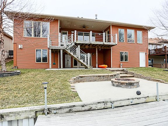 You will love this impeccable and luxurious 4 bedroom custom ranch on the lake. Offering open-concept w/ gleaming wood floors, high-end stainless steel appliances and gourmet kitchen w/ huge island and pantry. Many unique, custom add-ons in this one-of-a-kind home. Beautiful fireplaces on every level, walk-in closets, wet bar, walk-out basement and hot water on demand. Also, 3-car garage, storm shelter, covered deck & fire pit for entertaining on the lake. This is a must see! You will fall in love with this gleaming lakeside ranch.