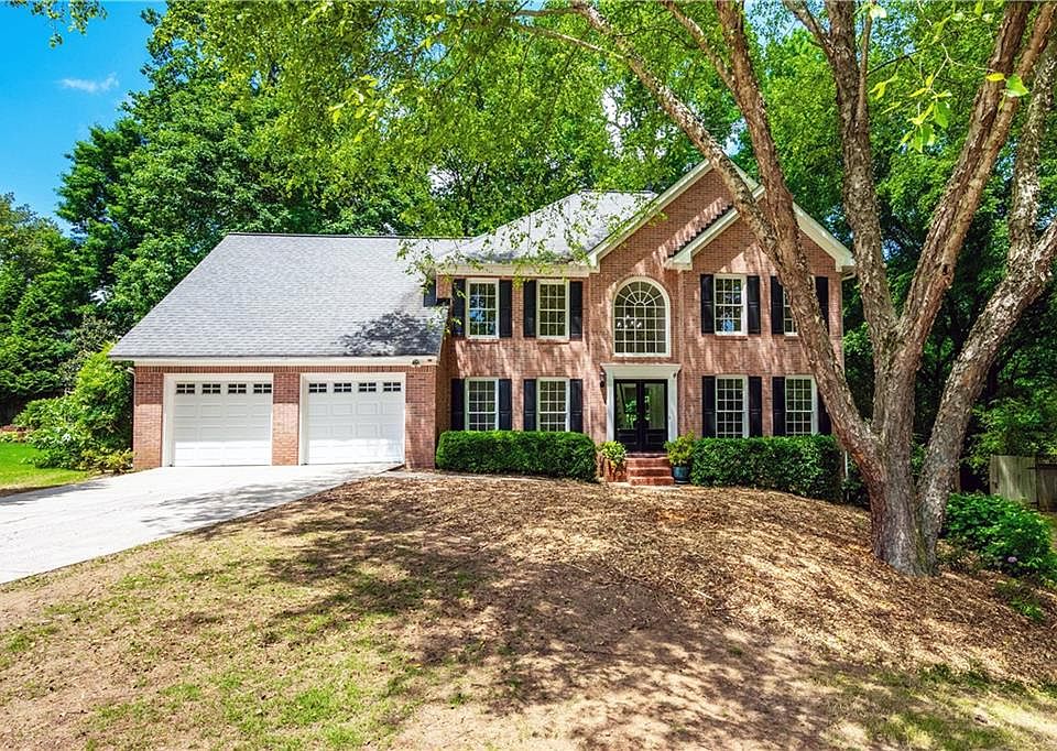 Updated brick beauty with fresh updates COMPLETE to create a pitch perfect, move-in ready home in the heart of Crabapple with highly rated schools. You'll love the fresh paint, updated lighting, new counters, all new floors, updated master bath, new lighting, and new front door to compliment the open floor plan with a large dining room and a flex space perfect for a home office. Upstairs is the master suite, 3 secondary bedrooms, and a hall bath. Primary bath has updated tile, frameless glass shower, painted vanities, new quartz counters, sinks and faucets. A marvelous, level lot on a cul-de-sac is oversized and can be the site of your suburban dreams complete with deck, privacy, a yard, and a creek. Included is a greenhouse, woodshed and outbuilding. Sun filled back property has raised beds for a home garden. Thriving community with full amenities including courts, pool, clubhouse and playground. Bustling Downtown Crabapple right outside your entrance for shopping, dining and events. Schools can't be beat! It's the ideal spot to call HOME.