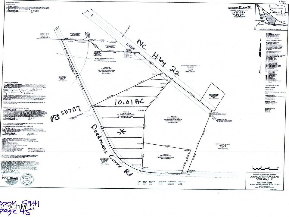 Acreage Offered for sale is Lot (B) 10.01 Acres less the Portion NCDOT has purchased from Seller and any easements to Widen NC Hwy 211. * Seller to provide New Survey.