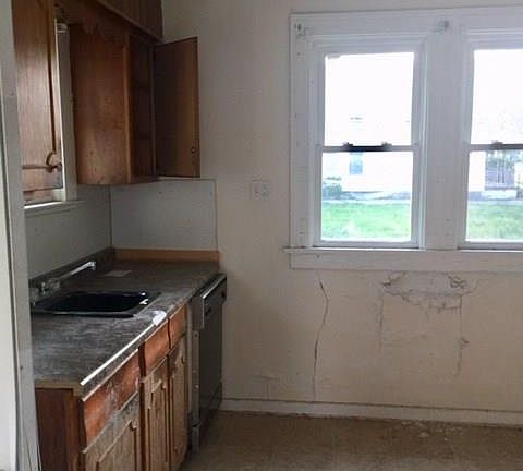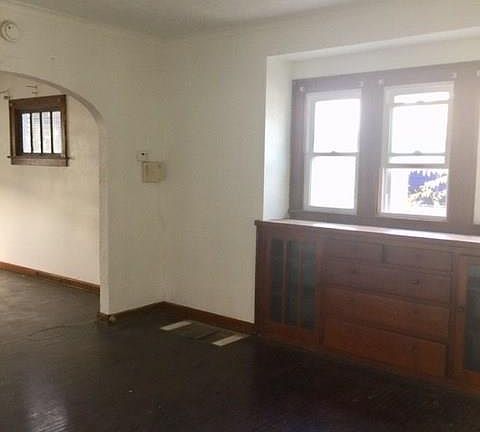 This Lucas County Land Bank property features natural hardwood throughout and a built in cabinet. Being sold As-Is. Please note: Furnace and water heater are missing.