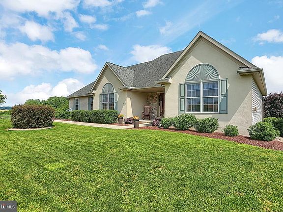 AMAZING 1-story rancher with magnificent farmland view for miles. Bright, open floor plan, in-law suite in daylight, walk-out lower level with 2nd kitchen, bedroom, 2nd fireplace, fitness room and full bath. This first floor living boasts a large kitchen with loads of cabinets, double oven and all stainless steel appliances, formal dining room and vaulted family room with 2-sided gas fireplace. 1st floor master suite with walk-in closet, master bath has garden tub, shower and double sink. New geo-thermal heating system (2016), 3-tiered deck with hot tub, 1st floor laundry room, 2-car garage, 4 bedrooms, 3 full baths. All on a beautiful 1-acre lot. This home is a gem!!