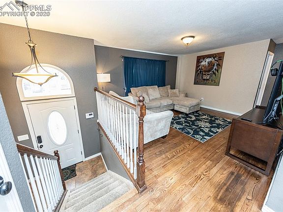 Spacious 4 bedroom home within walking distance to schools and parks, close to gate 20 of Fort Carson and I-25. This home features hardwood floors through out the main level, updated kitchen with granite counter tops, walk out to deck is great for entertaining in the large yard. 2 Bedrooms and full bath on upper level and 2 beds and full bath on lower level. Two living areas and lots of room for separate play area. Oversized 2 car garage with additional storage room off the back, it can also be a great work out room.