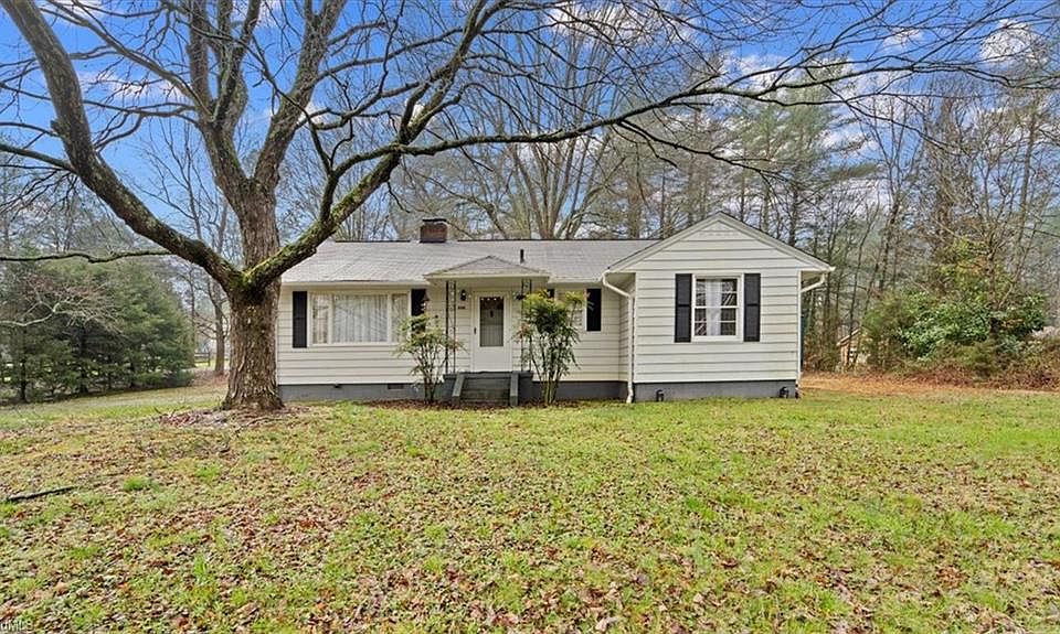 Discover your dream of countryside charm with modern comforts in this darling home! Nestled on a sprawling 5.4-acre lot, this treasure combines vintage appeal with updated living spaces. Inside, refinished hardwood floors shine throughout the living room and bedrooms, highlighting the home's timeless beauty. The cozy country fireplace and mantle add warmth to the living space, while the kitchen boasts vintage cabinets and a porcelain farmhouse-style double sink set against vinyl flooring. Step outside to enjoy an expansive blend of partially cleared and wooded land, complete with a shed and large equipment shelter, perfect for storage or hobbies. The covered front stoop invites you to relax and take in the serene surroundings. Plus, an unfinished basement offers ample storage opportunities. Located near the idyllic countryside yet conveniently close to everything Peters Creek Parkway has to offer! Solitude and accessibility! No septic permit on file with the county.