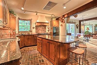 Move-in ready. Pottery Barn style barn beam architecture, open floor plan. Gas & wood burning F/P. 12' cathedral/family room, 9' formal living room ceilings. Natural brick floors w/radiant heat. Wood Mode custom kitchen. Extensive 1400 sq ft addition w/his & hers master baths, 3 mstr W/I closets. Finished LL w/kitchenette, entertainment area, full bath & exercise room. Minutes to Hbg, Hershey & West Shore.