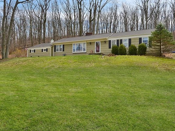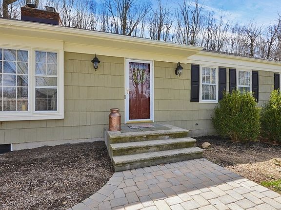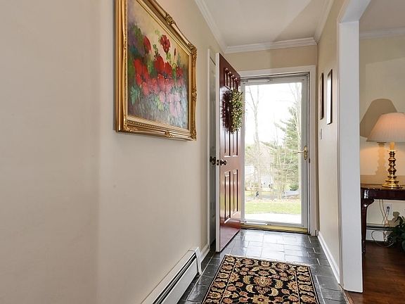 BOM! New septic! Newly renovated ranch is sequestered on 2.7 acres of landscaped and park-like property with attached 2-car garage and fenced in-ground pool surrounded by a woodland backdrop. A welcoming foyer invites your guests into the living room, featuring deep crown molding, warming fireplace and large bay window bringing natural light onto the gorgeous hardwood floors. This home offers an elegant dining room and fantastic family room with an additional fireplace. The classically updated kitchen has a vaulted ceiling with skylight, granite counters, breakfast bar, and a Viking range/oven. This home has been updated with a new roof, front walkway, hot water heater, boiler, and much more. Bus stop is right at the end of the driveway for your convenience.