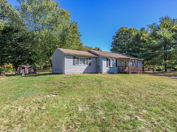 This well-maintained ranch offers single-level living on a peaceful country lot. Featuring 3 bedrooms, 1 full bath, and over 1,200 sq ft of living space, the home includes an open kitchen and living area, hardwood floors, and updated vinyl windows that fill the home with natural light. The property also features a detached garage, outdoor stable, and garden areas, offering ample space for hobbies, storage, or animals. Set on nearly 2 acres, you'll enjoy privacy, room to expand, and the charm of rural New England living-all while being just a short drive to local amenities and major routes. Subject to sellers finding suitable housing Whether you're looking for your first home, downsizing, or seeking a quiet retreat, this property is a versatile and inviting choice.