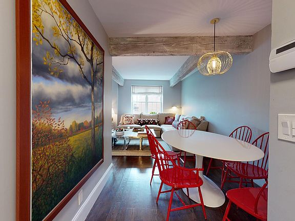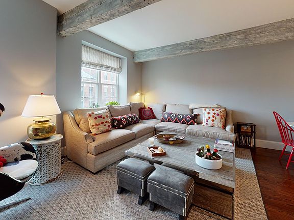 Spectacular two bedroom sun-soaked residence, custom designed & with waterfront and city views from private outdoor balcony. Professionally managed and elevator access building, located on the most iconic North End street, steps away from Boston's best restaurants and historic Freedom Trail. Renovated in 2019 with in-unit washer/dryer and central air A/C- a rarity for the North End! Ideal for corporate rental or 1-year lease. NO BROKER FEE! 3d tour available upon request. Renter responsible for utilities (electric only).