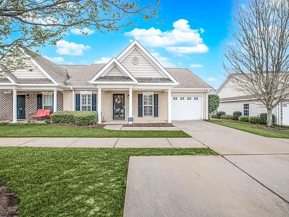 Fantastic end unit with garage & many upgrades! Open floor plan with sunroom & amazing covered back porch with retractable sun setter awning & sun shades plus upgraded stone work adds tons of back porch charm! Upgraded plantation shutters throughout! Upgraded tile in foyer with wainscoting plus front storm doors allows in lots of sunshine! Front storm door can be changed to be screen door for those spring days! Upgraded LVP flooring is perfect with pets & children! Nice neutral paint! Kitchen with built in microwave, newer stove, refrigerator that stays, nice pantry space plus breakfast bar! Dining room with upgraded light fixture! Living room with electric fire place with 3 or 4 different modes and puts out lots of heat if wanted in the cold months! Sunroom with tray ceiling & fan! Laundry room with hanging rod & cabinets! Owners suite with tray ceiling, fan, bathroom with water closet, easy to step into shower, tile floor & double walk in closet! Guest bedroom with tray ceiling as well plus fan! Spare bathroom with upgraded tile floor! Privacy fenced back plus storage room! Garage with custom storage built in cabinets! 2 amazing attic spaces both with pull down crawl space & lighting installed in both...the storage space is amazing & a must see especially the one accessible through spare bedroom closet! New sprinkler system control box! Hot water heater new in 2022! Heat/air new in 2017! Newer front spot light! So many nice features of this home, it is a must see quickly!