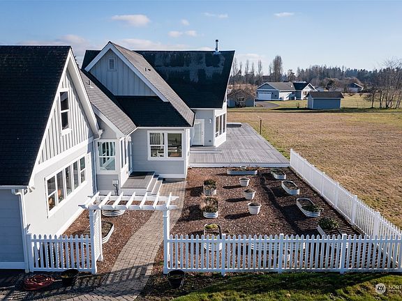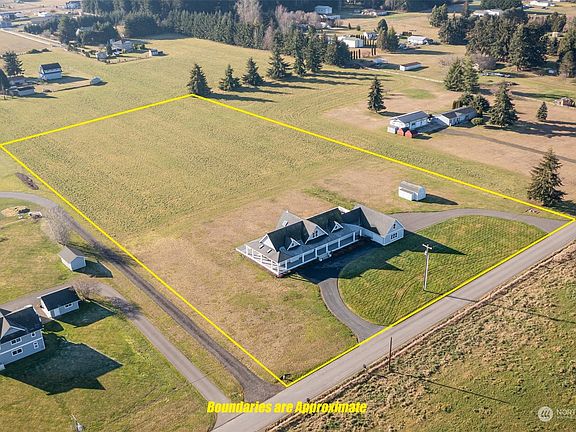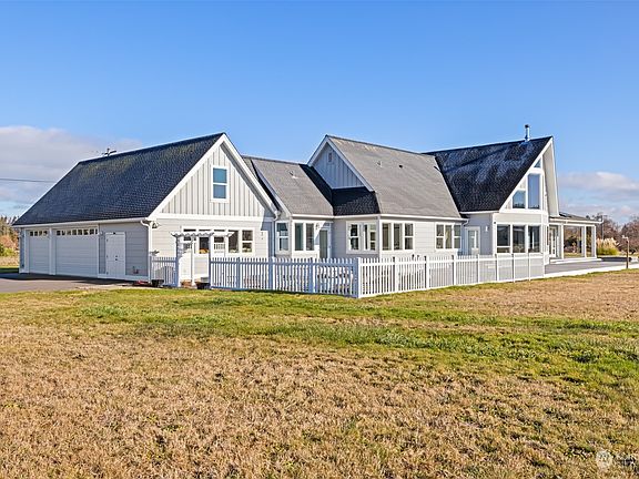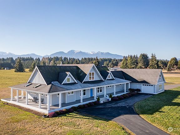 This beautiful home in the Agnew area between Port Angeles and Sequim is south facing with a 22' prow window to let the sunshine in. Clerestory windows on the north side of the house keep it light and bright year-around. Enjoy single-level living with a grand view of the North Olympic mountain range on 5 acres of country living. The 2800 sq. ft. home has 3 bedrooms, 2 bathrooms and a wrap-around covered porch. The Great Room has a wood stove for warmth and ambiance. The three-car garage has a pass-through for RV's. Corian counter-tops and Bliemeister cabinets in the kitchen. Honey maple floors lend a warmth to everything. Property has Agnew Irrigation water rights. Pasture is irrigated and mowed by local farmer.