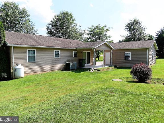 1 Acre country setting includes: rancher with 3 BR's, 2 full baths, very close to Md. Line. Maintenance free home with 1 detached oversized garage containing 100 AMP panel and 220 volts plug. Oak kitchen cabines w/cathedral arch doors, breakfast bar & pantry, appliances include: propane gas stove, hood, refrigerator, built-in dishwasher, washer/dryer, thermo tilt in windows, lower level has roughed in plumbing in coat closet at bottom of stairs, 14x25 lower level family room w/propane gas FP, walk-out sliding door and 20x25 utility room with workshop, extra block ceiling height in basement, blacktop driveway, 6x16 covered front porch, rear covered patio, 12x12 garden shed. No sellers disclosure, POA handling transaction through legal council.