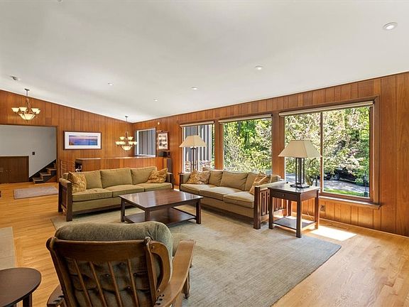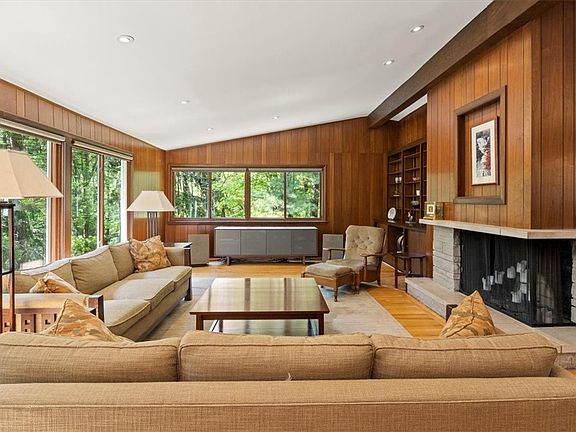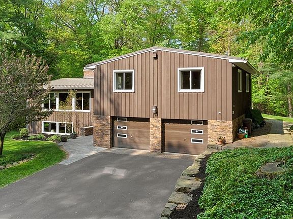 Showings to start Friday 5/19 1-5, Saturday 5/20 1-5, open Sunday 4-6, Monday 5/22 showings 2-5, offers due on Tuesday 5/23 at 1:00 pm. Incredible mid-century modern contemporary with soaring ceilings and expansive rooms. This beauty has nothing for you to do but move-in. Top of the line upgrades and renovations including but not limited to: Metal roof, added primary bath suite, main bath and first level full bath redone, custom garage door openers due to height, generator, windows, driveway, blown in insulation, commercial gutters, tank-less hot water system, hardwood floors, ultra high end furnace and a/c, flooring in baths and first floor laundry, front patio/walk and side walk, stone work on house walls, landscaping, ceilings redone, electric, rear patios, rear and front retaining walls, chimney complete rebuild, granite counters for kitchen, first floor gas fireplace in family room, all doors, lighting, new roof on shed, new shed in rear lot, all Soffit replacement, exterior wood work and complete staining, lower porch screens and door and the list goes on totaling approximately $358,000 in improvements. The exterior living backs to wooded area and to town trails to park.