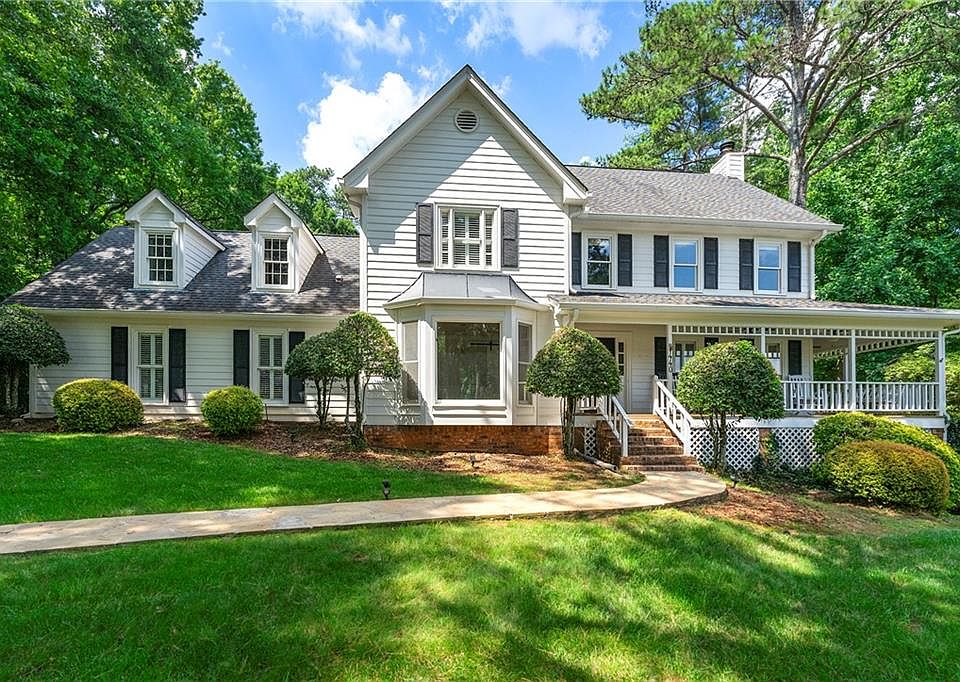 Welcome to this charming Roswell Station retreat, ideally situated just minutes from the vibrant dining and shopping of Canton Street—less than a 10-minute stroll away—and nestled in an active neighborhood with a community pool and tennis courts. Located directly across from Roswell Area Park and in a top-rated school district, this 4-bedroom, 3.5-bath home offers the perfect blend of location, comfort, and outdoor living. A welcoming wrap-around front porch adds to the home’s curb appeal, and the back deck overlooks a saltwater in-ground pool and a flat, fenced backyard—ideal for relaxing or entertaining. The backyard feels exceptionally private, backing up to land that cannot be developed. Both the front and back yards are equipped with updated in-ground sprinkler systems, helping maintain the lush landscaping with ease. Inside, there are two primary suite options. The main-level suite provides a peaceful retreat with easy access, dual vanities, large shower, and separate tub. Upstairs you’ll find new carpet throughout, including a spacious ensuite bedroom and two additional generously sized bedrooms. Each bedroom features its own large walk-in closet, providing ample storage space. This home also features multiple flexible living spaces to suit a variety of needs. There is a finished rec room—perfect for a home gym, hangout space, or hobby room. Also, above the garage, a separate office/flex room offers additional privacy and could easily serve as a home office, playroom, or guest retreat. Additional highlights include double-paned windows throughout the home, ample storage, and a thoughtfully designed floor plan that adapts to your lifestyle. With a prime location in sought-after Roswell Station, this home is a rare find.