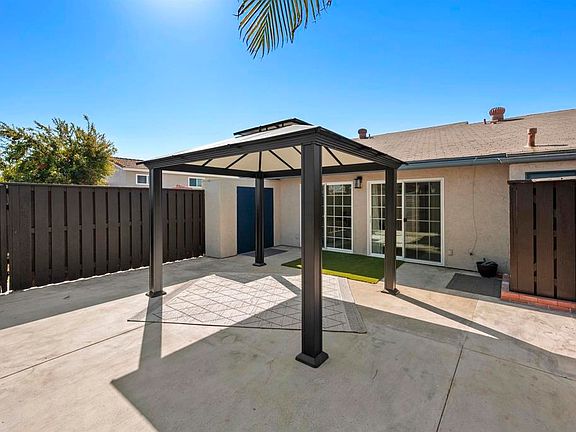One Story Home! Yes, a Single Story end unit in a very quiet location that is in the back of the complex. Feels like a detached home. 2 large private bedrooms with sliding glass doors leading out to your backyard for the morning sun. Primary bedroom has a full bathroom and a large closet. 2nd bathroom has a full size shower with beautiful glass doors. Large kitchen island with new appliances and new white cabinets. Down the hallway, enter through the sliding barn doors to an office/den that includes a small closet. Luxury Vinyl Flooring throughout the home, looks and feels like a brand new home. Laundry Closet with an LG washer & dryer. Very comfortable, easy living with no stairs. 2 parking spaces included with this home. One parking spot is upfront right by the grass and close to the home. When scheduling an appointment to view this home, buyers may park upfront in #4 and agents park in #27. Large Backyard with a 10 x 12 Gazebo and a storage closet.