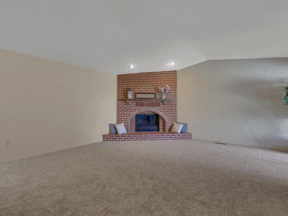 Beautiful updates to this rancher. True one level living! Brand new carpet throughout the home. Completely refreshed with new paint inside & out. Lovely light and bright kitchen features new stove & microwave. There is not a refrigerator currently installed in kitchen but there is one in garage. The expansive living room boasts vaulted ceilings, wood fireplace and walks out to patio. The Owners retreat is complete with new carpet, new sliding glass door to patio and that walk in closet! 2 more large bedrooms each with fresh paint and carpet in soothing neural tones. AC to keep you cool this summer! Oversized 2 car garage has plenty of storage with shelves along two walls. Back patio is fenced and has some rose bushes as well as spring flowers already coming up. Located by shopping, schools, and parks.