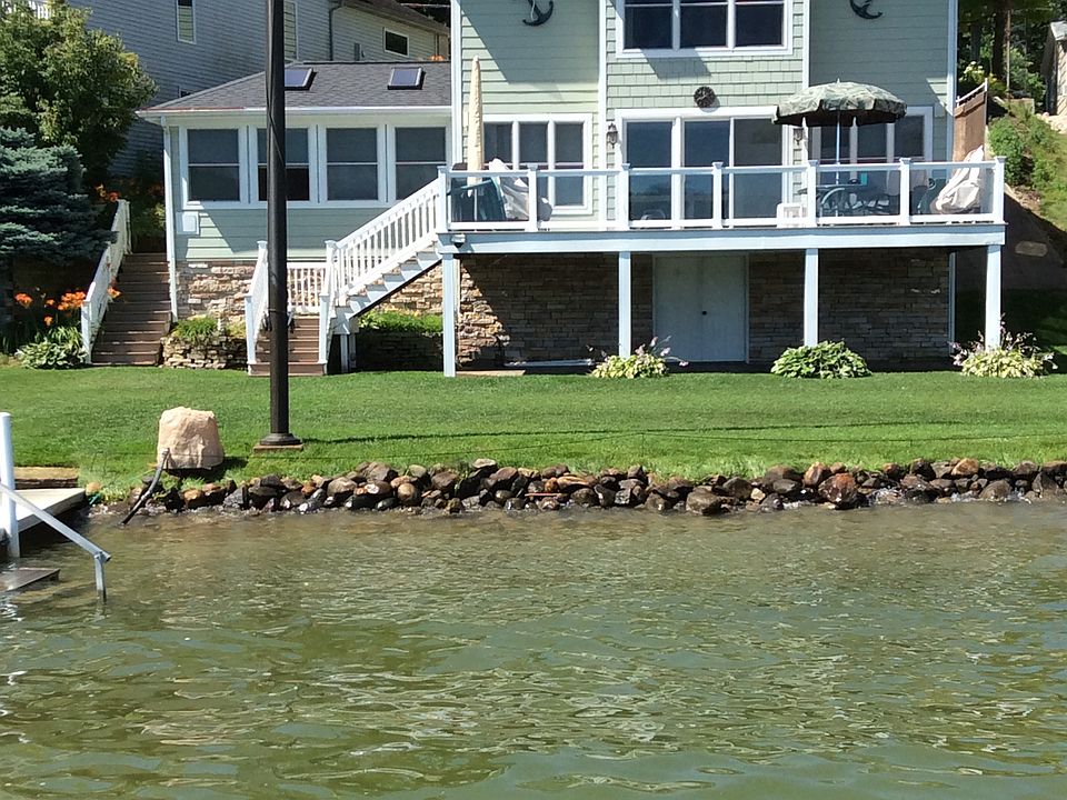 Completely gutted inside and out 2008. Frontage=74'. Rear=43'. 3 car attached garage=730 sq. ft. Top & bottom deck=400 sq. ft. each. Appliances stay. Taxes =$5,246 no homestead. Everything 10 yrs. or newer except hot water heater/ac unit. Irrigation system front & back. Room to park 8 cars using garage. Custom built cabinets throughout (Country Mill). 3 season porch/room. All new Anderson windows/doors & blinds. Great beach. Pier. Tri-toon lift optional.