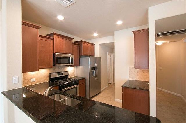 Immaculate single story four bedroom home available for an immediate move-in! Open floor plan with an abundance of natural light. The interior offers many upgrades including: granite counter tops in the kitchen, stainless steel appliances including a microwave, gas stove, dishwasher, refrigerator, washer and dryer. Tile in the main areas and carpet in bedrooms. Outdoors includes a fenced back yard, sprinkler system, and covered back patio. Access to community neighborhood pool, park and walking trails. Walking distance to super HEB grocery store, dining, and metro rail. Leander school district zoned schools, Jim plain elementary, Leander middle school, and Rouse High School.