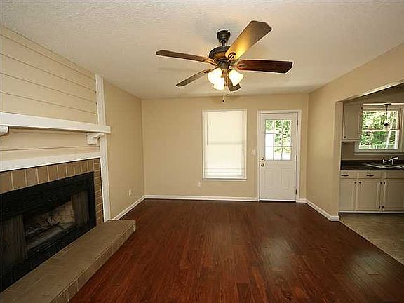METICULOUS RENOVATION! This home is picture perfect! Fantastic 1-story home with an open floor plan-NO STAIRS! 3 bedroom/2 bath PLUS 2 family rooms, one with a wood burning fireplace. Gorgeous HAND SCRAPED wood flooring throughout. Entire home (interior & exterior) has fresh paint and new carpet in the bedrooms. NEW kitchen with tiled floors and black appliances. Dining area has chair rail crown molding. Master bedroom is a nice size complete with a ceiling fan and 2 closets. Master bathroom is ALL NEW!! Tile floors, new vanity, and tiled shower. Spare bathroom is gorgeous! Tiled shower, tile floors, new vanity, and framed mirror. This home is light, bright and airy with neutral colors throughout! Oversized laundry/mud room located off the garage and has access to the backyard. Roof & HVAC are NEW- less than 1 year old. 1 car garage plus additional storage building in the backyard. Backyard is spacious, fenced in, and backs up to a wooded area- no neighbors behind you! No HOA! NEW, NEW, NEW! Don't let this one get away, take a look, this home is simply beautiful!