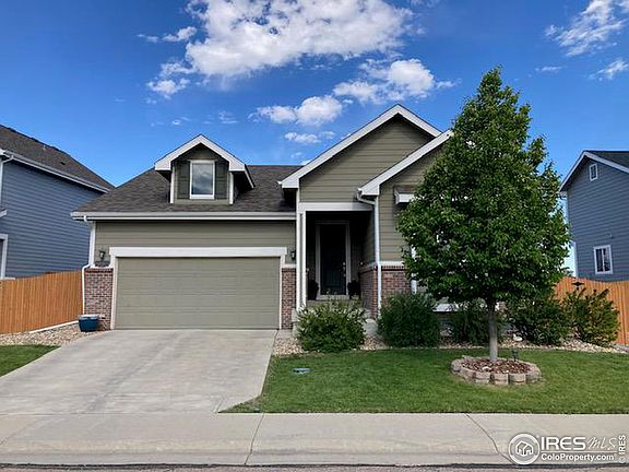 Delight in mountain views as you enter this charming home. Built in 2015, offering abundant natural light and tranquil living. The foyer is welcoming with hard wood flooring, 8-foot beveled doors, vaulted ceilings, and custom paint. Impressive! The split wing floor plan is spacious. Entertain with ease in the kitchen featuring stainless steel appliances, a large pantry, and new Maytag dishwasher. This Dacono ranch home features 3 bedrooms, 2 baths, 2-car oversized garage with builder's upgrades making this home breathtaking.Enjoy low energy payments as a benefit of the solar. Solar is paid in full. The HOA is low at $42.50 per month. This home features double covered patios, each showcasing sliders opening to a low maintenance yard. Backing to open space with bike trails for your enjoyment, a prime location in a family friendly neighborhood and growing community, just 2 miles East of I-25, close to shopping and recreation, come view this home today and make it yours.