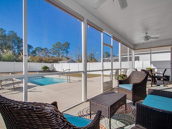 This beautiful home in Lafayette Park is your oasis at the Beach. As you enter the home, you will see the formal dining room on your right that opens up to the great room, kitchen and your eyes will be drawn all the way out to the pool area. The 10 x 20 pool is just off the screened porch which features double fans and sun shades. The backyard is fully fenced and completely private.This home has so many upgrades, hardwood floors throughout the main level, vaulted ceiling in great room and tray ceilings in dining room and master bedroom. The kitchen has granite countertops, stainless appliances, double oven, beautiful tiled backsplash with under cabinet and over cabinet lighting. The master bath has a rain forest tiled shower, and master closet is custom. The other two bedrooms are separated by a Jack and Jill bath. There is a half bath near the built out laundry room. Bonus room upstairs has a full bath. This home comes complete with hurricane shutters, security system, shelving in the garage, and the garage is wired for a portable generator that will run everything except the AC. Lafayette Park is located convenient to shopping, restaurants, and beaches. Come and enjoy your life at the beach, you'll be glad you did!!