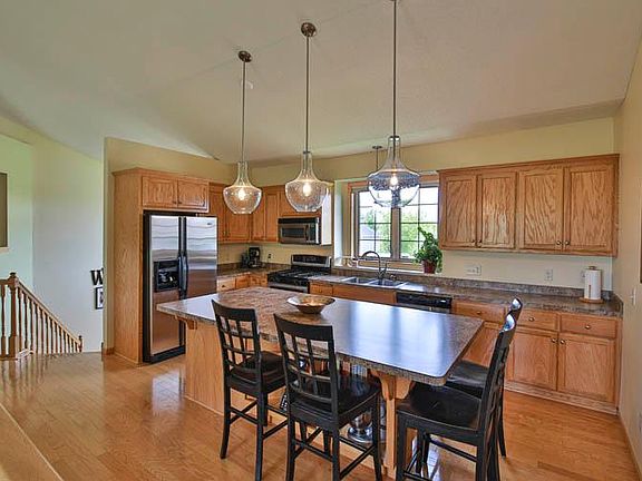 Make yourself at home! Completely finished with 4 bedrooms and 3 baths, this home features an open floor plan with hardwood & tile floors, vaulted ceiling, 2 gas burning fireplaces, kitchen with huge center island/breakfast bar, stainless steel appliances and lots of cabinet space. Expansive living room with walk-out to your future deck, three bedrooms on one level & a master suite with 3/4 private bath. Lower level family room with colored epoxy floors walks-out a perfectly manicured park-like backyard perfect for entertaining; Pergola, paver patio, firepit, playhouse, dog kennel. 3-car heated & insulated garage with storage space above & new concrete apron. All of this and more on nearly half an acre lot with in-ground sprinkler system and beautifully landscaped yard that is second-to-none.