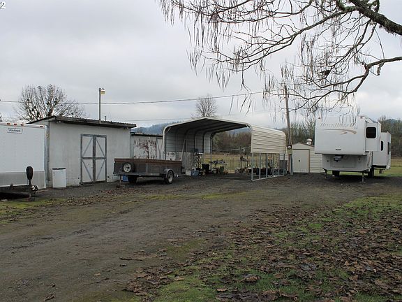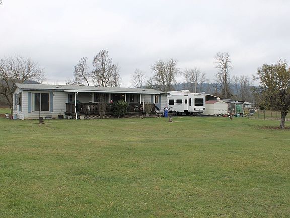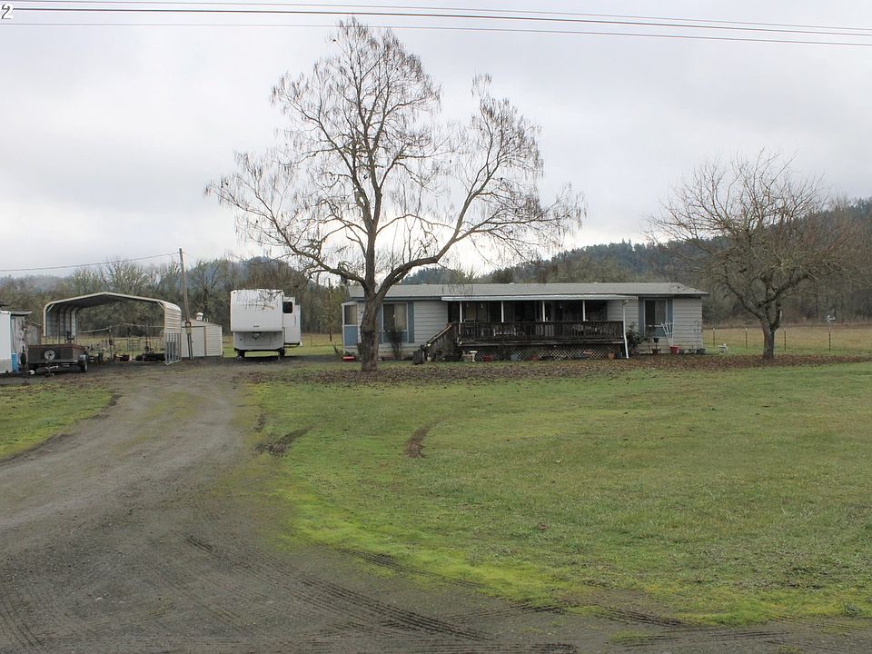 Private mini-farm in the heart of Lookingglass Valley that fronts Olalla Creek. All flat 7.8 acres. Older double wide w/covered decks front & back that has been well kept & is very livable. Numerous outbldgs, carport, well, plus UBW. Water rights to creek can be applied for. RV hook-ups, fenced garden area, DFN fiber internet. Fridge, range, washer/dryer remain. Tranquil & serene end of road paradise yet close to town. Retire comfortably in the home or live in it while building your dream home.