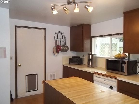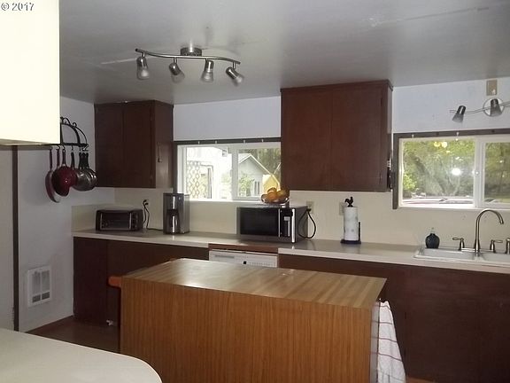 3 bedrooms,2 baths in this home on almost an acre (.94) in town.Home has new(2015)membrane roof, new vinyl windows. Bonus room (16'X 22') was originally the garage, there is a free standing detached garage. RV parking.$2500 allowance for new carpet.City says lot can be partitioned. Home built from Cedar, w/exposed cedar beams in living/dining area. Big wide 46" hallways make for wheelchair access.