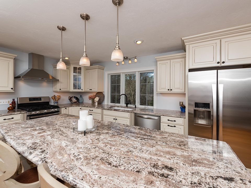 Are you looking for WATERFRONT elegance? Look no further. The first floor offers a front foyer with a fireplaced den/office to the right and a formal dining room to the left. The custom, gourmet kitchen with plenty of cabinets, gleaming granite countertops and brand new stainless steel appliances opens to a family room offering plenty of space for everyone. The first floor Master allows you to stay in the home for many years to come, well after the children have left the nest. A full basement is ready to be finished to your taste. But the outdoor space is the true draw. Privacy is abundant and the lake-size body of water can be used for kayaking in the summer and skating in the winter! The heating system is a mere 5 years old. We are providing one-on-one showings and virtual tours during this time.