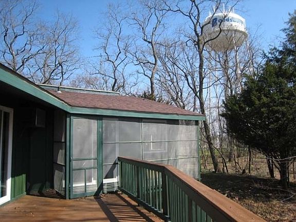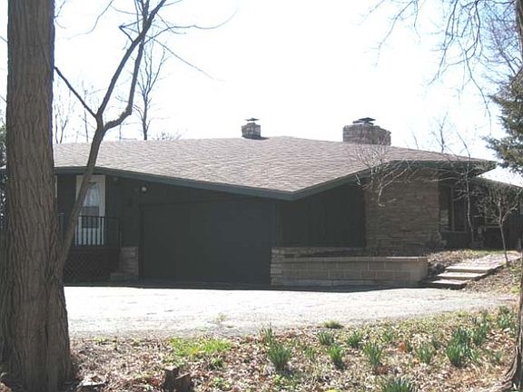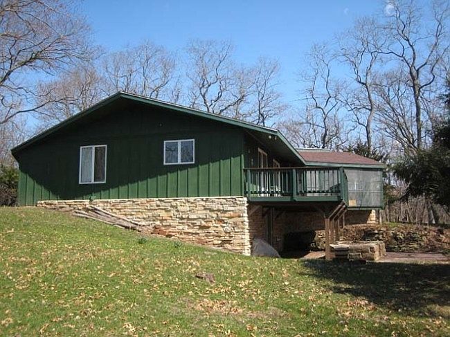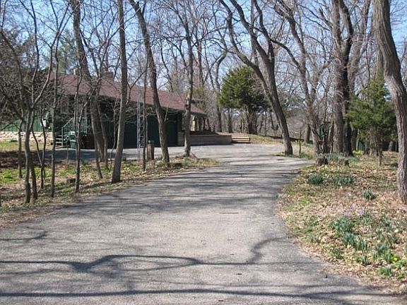 It may feel like it s perched on a bluff in a State Park but this one of a kind home is right in town, just a short walk to Main St. shops and restaurants. The design of the house was heavily inspired by Frank Lloyd Wright and custom-built to draw in the surrounding natural beauty with attached decks and patios. A massive stone fireplace is the focal point. Open floor-plan is light and airy. Both attached AND detached garages w/ workshop-storage above. Over an acre of woods and perennial flowers.