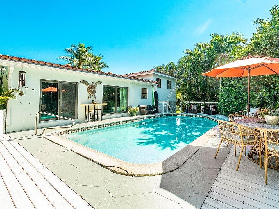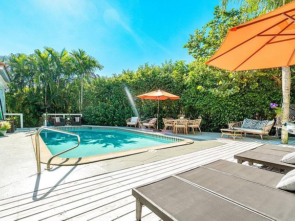 Located in the highly sought after East Boca neighborhood of the Golden Triangle!Walk to Mizner Park, Lake Wyman, 5th Ave Shops. Minutes to Intracoastal and 1 mile to the Beach. Steps away from Boca's finest restaurants, entertainment, and new Brightline Station. Just order your golf cart and enjoy your South Florida lifestyle.This pristine 4/3 pool home was renovated in 2021. Features open floor plan into kitchen with white quartzite countertops, and seated island. Wide plank light wood laminate floors throughout, custom lighting and custom built in wall unit . High volume ceilings, split floor plan : Master on main level with sliding glass doors out to the pool and deck, 2 bedrooms upstairs and the newly added 2nd Master featuring large walk in closet and full bath downstairs. White Plantation Shutters offer ample natural light throughout this Northeast exposure home. Lush tropical landscaping with a large fully fenced side and backyard, perfect for entertaining in your own tropical oasis featuring slate stone fire pit area. Glass white stone wall creates outdoor hot and cold shower. Newly added in 2021 custom 900sf wood decking surrounding the pool, hand painted and stained shabby chic white. This exceptional home is move in ready or an amazing investment opportunity.