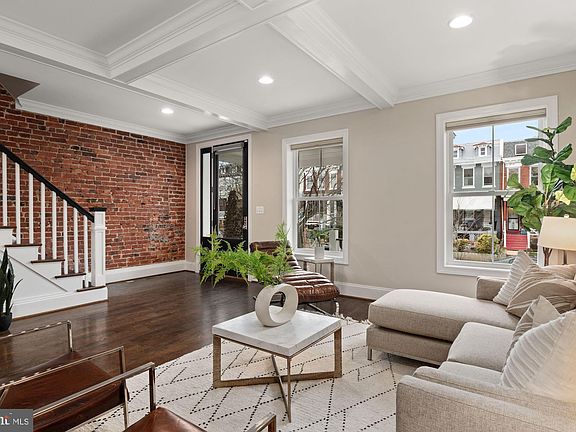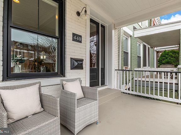 440 Newton Place NW is a stunning four-bedroom, three-and-a-half-bathroom, situated on a quiet, one-way street in Park View. Step up to the front porch, perfect for enjoying a cup of coffee in the morning, and admire the beautifully landscaped front yard and splendid neighborhood views. This jewel box of a townhome was completely renovated in 2016 to create a spacious, open floor plan boasting gleaming hardwood floors, high ceilings with custom moldings, and grand windows that flood the home with natural light. Just off the front door is the open main living area featuring crown molding and coffered ceilings, recessed lights, a touch of exposed brick maintaining the original charm of the home, a powder room, and a dining area just off the kitchen at the rear of the open main level. The gourmet kitchen is fully equipped with professional stainless-steel appliances, including a gas range with a hood, a French door fridge and a beverage cooler, ample cabinet space, marble countertops, a subway tile backsplash, a long peninsula with counter seating where you can share a casual meal or spread out with a laptop and work from home, and a built-in mudroom area just off the back door leading to the rear deck. The rear deck is the perfect spot for dining al fresco on a sunny day and provides access to the two off-street parking spots featuring a garage door for extra security. At the top of the stairs on the second level, a centrally located skylight drenches the home with natural light. The upper level features a spacious primary suite with vaulted ceilings and includes a large walk-in closet with custom shelving, and a luxurious en-suite bath featuring a double vanity with ample storage and a custom tile shower. Two other bedrooms on this floor share an updated second full bath featuring a custom tile soaking tub. The lower level of the home holds the family room offering additional living space and a wet bar for entertaining, the fourth bedroom, and a third full bathroom. 440 Newton Place NW provides the perfect combination of living in a peaceful section of an urban neighborhood with streamlined accessibility to many of the popular areas in and around Washington, DC!