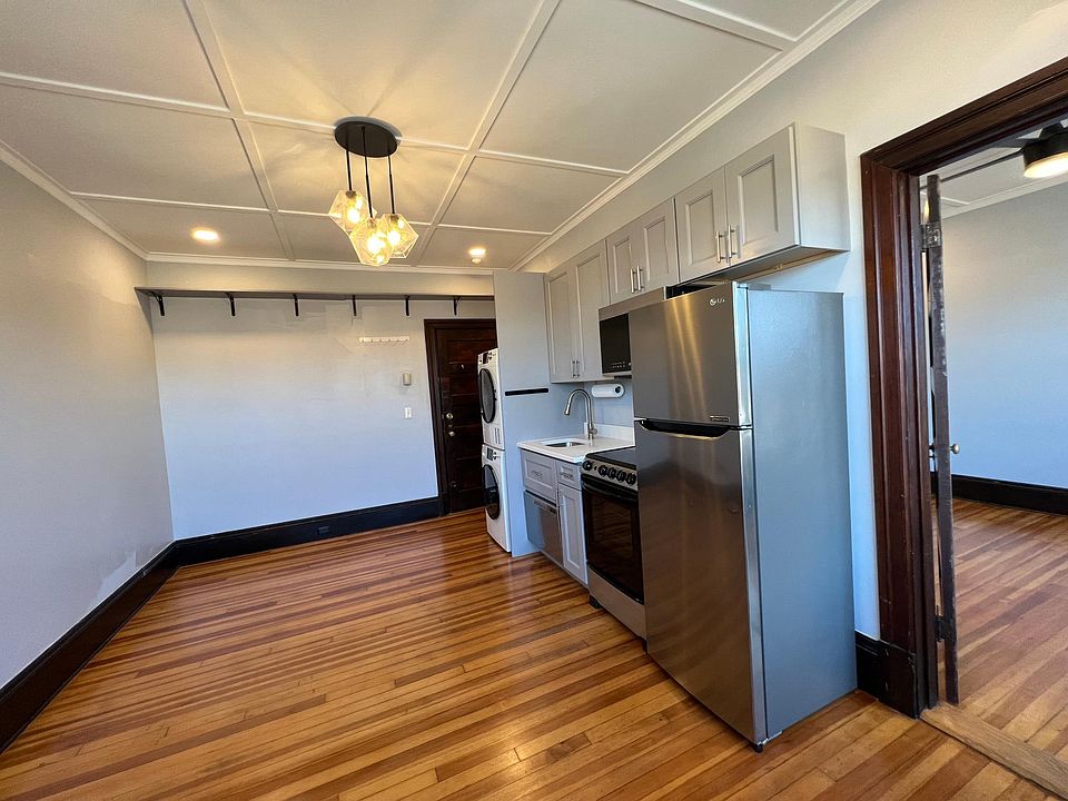 Renovated 1 Bedroom 1 Bath Apartment in The Heart Of Downtown! Bars, Luxurious 1 Bedroom 1 Bath apartment with gourmet stainless steel kitchen. This apartment features recessed lighting and ceiling fan; renovated kitchen with stone countertops; all stainless steel appliances (including dishwasher and in-unit washer/dryer); renovated modern bathroom with heated floor, and hardwood floors throughout. The building is secured with a smart entry system, compatible with smartphone. Heat and hot water are included. Heat and hot water are included. The tenant pays for electricity and cable/internet. All leases are based on 12-month rentals. First month's rent and a SayRhino policy are due at lease signing (no security deposit required!). SayRhino is an insurance policy in lieu of a security deposit. There is a large municipal parking lot next to the building. No smoking through the building.