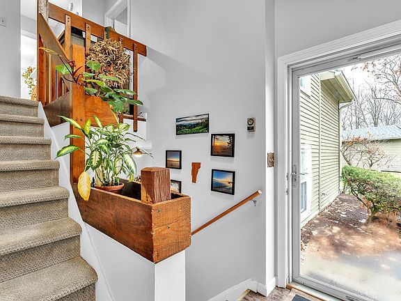 Don’t miss this move-in ready townhome in one of Colchester’s most desirable neighborhoods! This charming two-bedroom condo in Colchester’s sought-after Sunderland Woods neighborhood offers a fantastic layout and easy access to association amenities. The bright and spacious first level features an open kitchen with ceiling-height oak cabinetry and newer stainless appliances. The kitchen flows seamlessly into the large living and dining areas, complete with custom built-ins and a newer Rinnai wall furnace. A large, northwest-facing slider brings in afternoon light and opens to a private back deck with tranquil views of the surrounding lawn and greenery. A tiled half-bath completes the main floor. Upstairs, you'll find two generous bedrooms with ample closet space, newer ceiling fans, and a full bath with updated fixtures and a freshly painted vanity. Laundry is also conveniently located on the second floor. Outside, the oversized deck provides a peaceful retreat with privacy screening, perfect for relaxing or entertaining. New roof and skylight replacement in 2023! The home also includes a carport with covered parking, additional lockable storage, and access to community amenities, including a pool, basketball and tennis/pickleball courts, walking/snowshoeing/ski trails, and gardens. With ample storage space and a fantastic location, this move-in-ready condo offers the perfect blend of comfort and convenience!