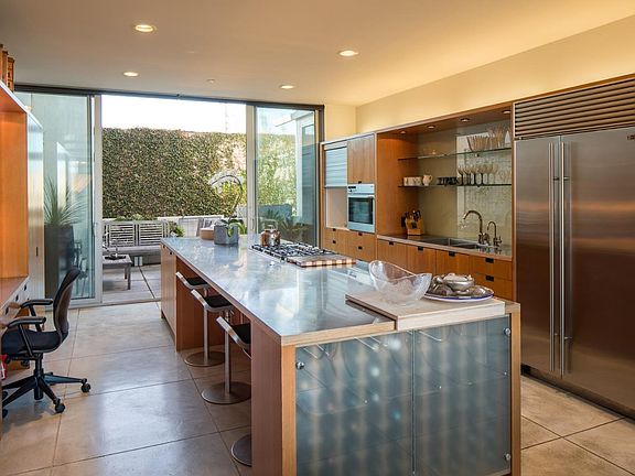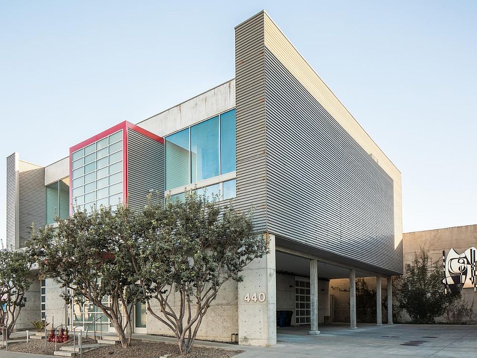 Featured in Architectural Digest & Dwell Magazine, this Jerrold E. Lomax, FAIA industrial-chic design is an iconic sight in Sand City. A bold, modernist statement with walls of glass, corrugated steel, and saw-cut concrete, the building's 2-story residence is above an expansive commercial space that has hosted sophisticated art events, extravagant car shows, and currently functions as a theater & gym. On the main floor, the north-facing 20ft glass walls provide perfect sun control and privacy. The open living space flows effortlessly between the custom Bulthaup-style kitchen, dining room, guest suite, and office separated by a fireplace and Lomax's signature minimalistic yet functional storage. The spa-like mezzanine master suite features a fireplace, soaking tub, and a spacious closet. Two terraces and rooftop access with sweeping ocean views provide plenty of room for entertaining. Just minutes to all the Monterey Peninsula has to offer, this modernist masterpiece is ready to enjoy.