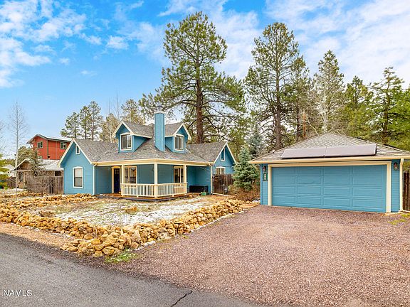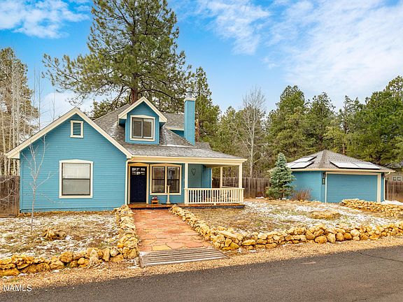 Peace and serenity meet entering this elegant farmhouse-style home through the Native Flagstaff zero scape meadow. The home features 100-year-old locally reclaimed pine flooring, an exquisite eat-in kitchen open to a lush garden, New Roof, New Paint (int/ext), New solar system, New bedroom flooring, 4 season chicken coop, 2Car garage / workshop & RV Parking on a RARE extra large double lot. Backing a beautifully maintained ranch, you feel an expansive rural feel from the kitchen through your garden. Forest access with endless trails, hiking, and exploration is very close. Enjoy your 3 bed 2 bath /home with the unexpected quality of craftsmanship and refreshing details rare to find. Come experience Mountainaires' finest, unique, and truly gorgeous home. NO HOA