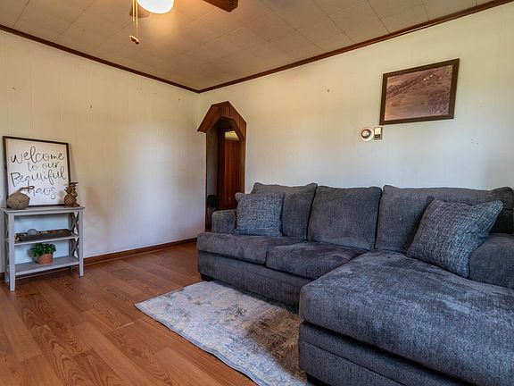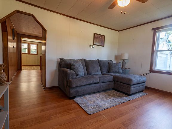 WELCOME HOME to your ADORABLE & AFFORDABLE TWO bedroom, ONE bathroom with a wonderful country feeling! Location of this home is so ideal with its close proximity to town, yet the country views and spacious yard give you the country living feel. As you pull into your paved driveway you are greeted by an oversized one car detached garage with an attached workshop offering plenty of space for the outdoor hobbies. Stroll up the sidewalk to your covered front porch before stepping inside to be welcomed by your living room. Continue on to a separate dining room area that connects to your kitchen overlooking the backyard and offering an exterior door to your lovely wrap around covered back deck. Your two bedrooms have beautiful, original hardwood floors with a full bathroom situated between the two. Outside you will love the space to relax on your covered porches, plenty of room in the yard to play, as well as sheds for extra storage space. Home comes complete with a stove and one year HSA Home Warranty with Buyer Seven Star Upgrade. Utility averages are: Duke ($94/month), Centerpoint ($117/month), North Lawrence Water ($40/month), and Comcast available. Come check out this beautiful rural setting home today!