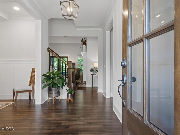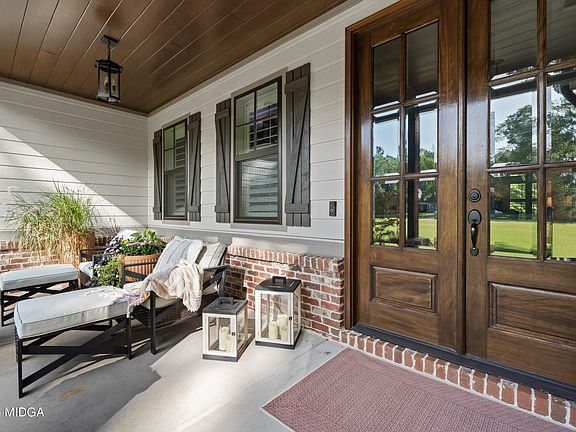 4-bed/3.5-bath house on 2.07 acres in Riata Equestrian Community, Forsyth, Monroe County, Georgia. This lovely Craftsman style home was built in 2020 and has been immaculately kept! Downstairs you'll find a large living room with high-vaulted ceilings with exposed wooden beams and a gas fireplace; the kitchen has quartz countertops, a gas cooktop, double oven, and an island that seats three; a separate dining room with coffered ceilings; and the spacious primary ensuite-bedroom w/ sitting room has more high-vaulted ceilings and exposed wooden beams. Upstairs there are three large bedrooms and two bathrooms (one bedroom is an ensuite). Outside features a covered back porch with a gas fireplace, three car garage, and covered front porch. Neighborhood amenities include a pool, cabana, over three miles of horse-riding trails, large indoor arena, over 80 acres of greenspace and pastures, stables, stocked pond, camper/trailer storage, and events provided throughout the year. Located three miles from I-75 off of Johnstonville Road - just south of the Atlanta Metro area.