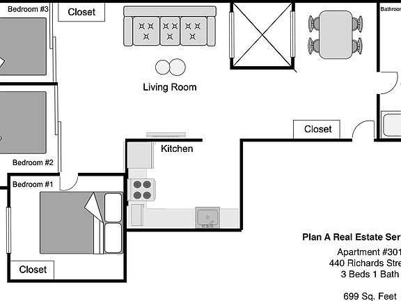 This 565 square foot condo home has 3 bedrooms and 1.0 bathrooms. This home is located at 440 Richards St #301, Vancouver, BC V6B 2Z3.