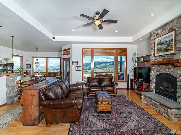 Walk through the front doors & be in awe of the gorgeous views! This custom 3 bed/2.5 bath, 2364sqft home is warm & welcoming w/ quality wood beam/trim & rock accents throughout. The hardwood floors lead you through the open great room & spacious kitchen to the wind-protected back deck w/ panoramic views. Large master suite has soaking tub & walk in shower. Office has attached 1/2 bath & perfect for working from home. Quick I-90 access too!