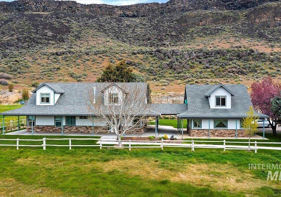 Awesome home with equally as good location with 12 acres of land on the much desired River Road in the Hagerman Valley. The home consists of two bedrooms one of which is the primary bedroom with a wonderful master bath and fireplace. The floor plan is open with the large living area, fireplace and a dream kitchen all located together. The main home is served with a water source heat pump with spring water. There is also guest quarters that consists of a living / kitchen area, bedroom and bath. This home looks brand new and shows the owners pride in it's condition. The landscaping is mature and is watered with Spring Water coming out of the rocks on this property. You can't get water like this in many places. This property has great water rights along with views that are breath taking The property consists of 12 acres of which approx. 5 acres is irrigated and the remainder runs up the canyon wall for suburb tranquility and it's a great home for Eagles, hawks, etc. Great area for wildlife